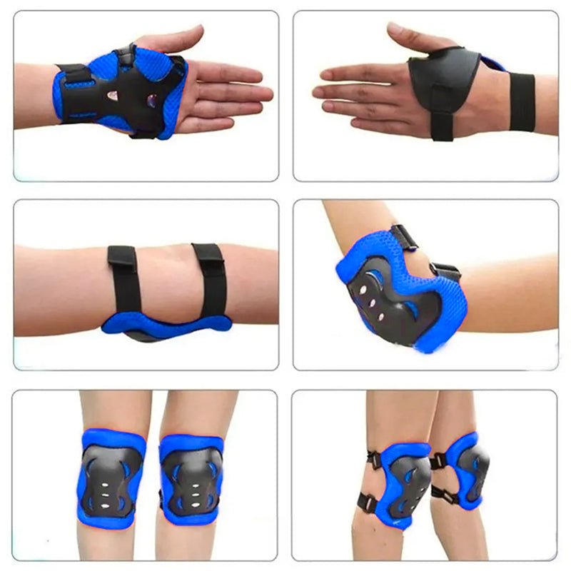 Set Protección Niños Casco Rodilla Codo Mano Azul Fuego