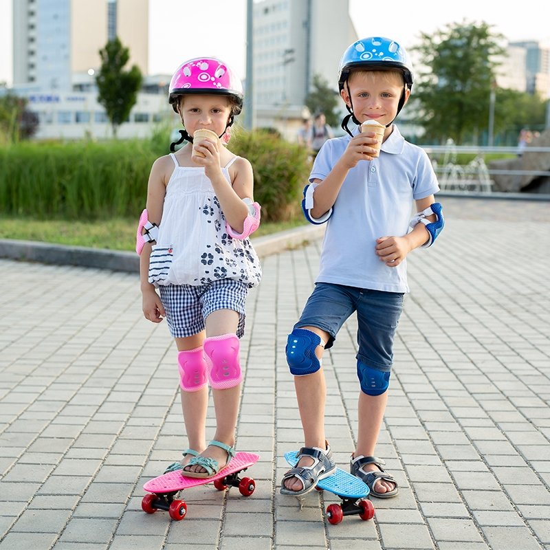 Conjunto de equipo de protección para niños de 7 piezas, que incluye casco de 1 pieza, muñequeras de 2 piezas, rodilleras de 2 piezas y coderas de 2 piezas. Ideal para patinar, andar en bicicleta, andar en scooters. y muchos otros deportes al aire libre.