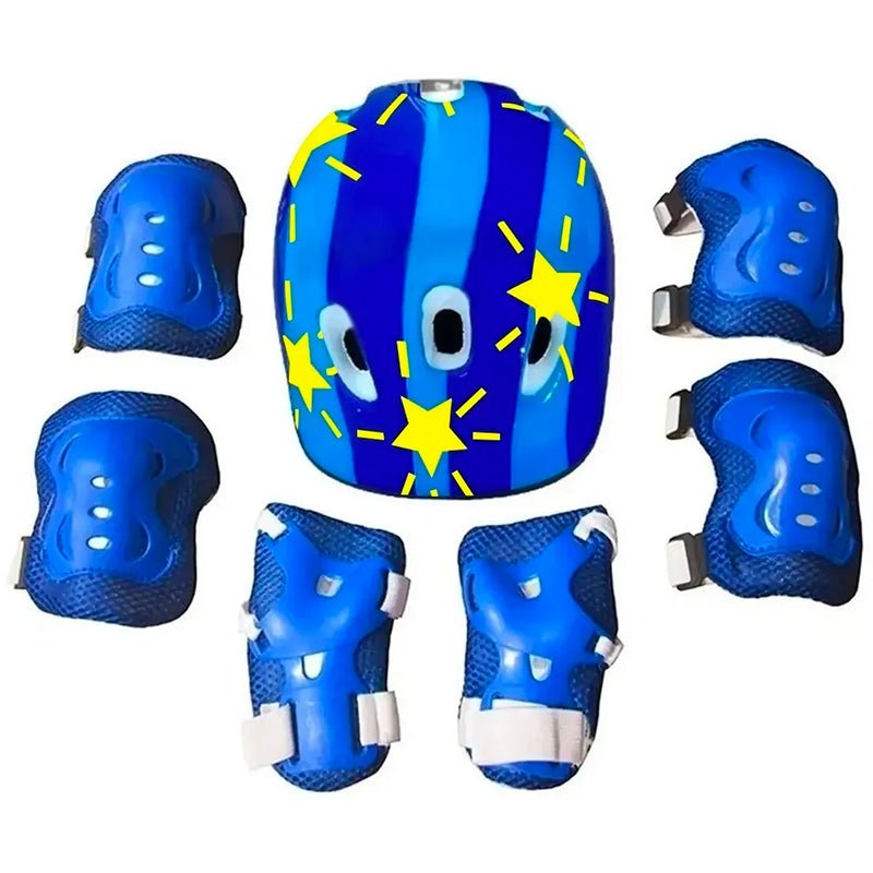 Set Protección Niños Casco Rodilla Codo Mano Azul Estrella